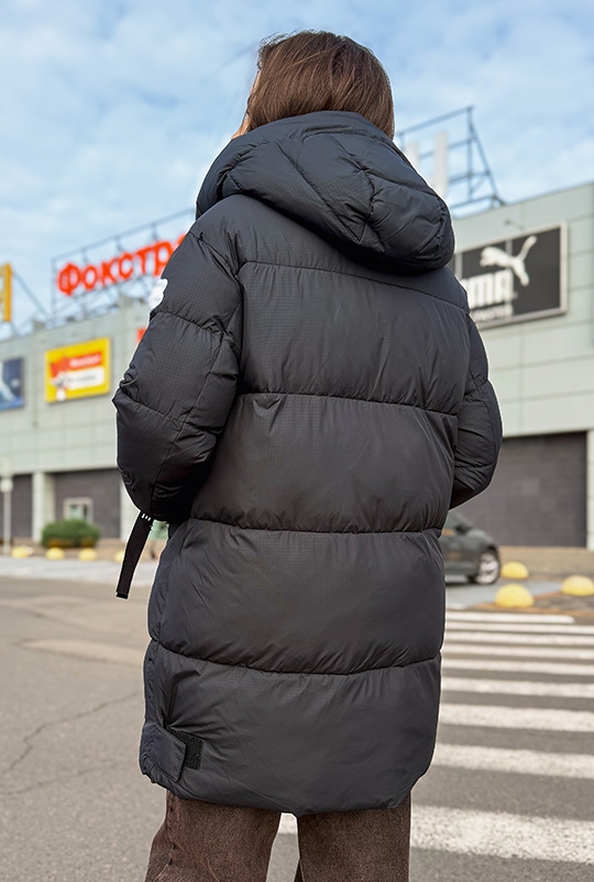 Прямий крій, знімний капюшон, брендова вишивка, манжети-мітенки — кожна деталь створена для впевненого зимового образу.