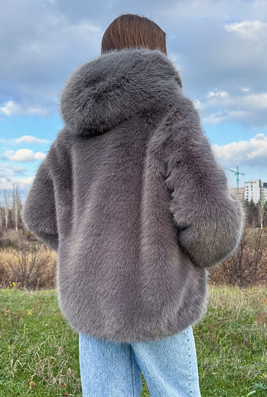 Хочеш виглядати розкішно та почуватися тепло в будь-яку погоду? Наша сіра шуба з капюшоном зі штучного хутра — must-have сезону AW24/25. Трендовий подовжений вільний силует, густий пухнастий ворс преміум-класу та зручний капюшон створюють стиль, який не потребує зайвих слів.