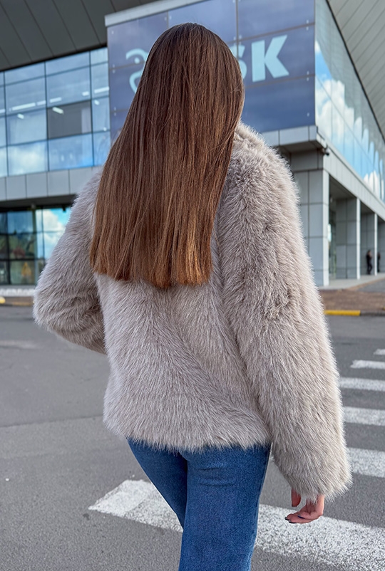 Наша екошуба в кольорі тауп — це про тепло, преміальний вигляд і трендовий силует без зайвої ваги. Вона м’яка, об’ємна, ніжна — і пасує до всього: від джинсів до суконь.