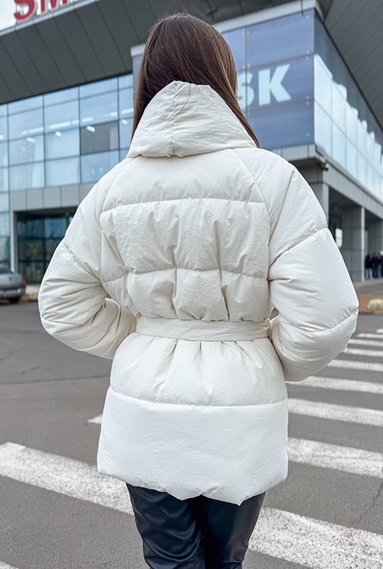 Сідає ідеально — з першої примірки. Пуховик на тинсулейті гріє краще за класичні утеплювачі, не додаючи зайвого об’єму. Фактурна жатка виглядає преміально, а шалевий комір робить силует вишуканим. Пояс формує красиву лінію талії, а вільний крій дарує комфорт у будь-який зимовий день.