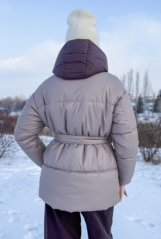 Теплий, але легкий. Обʼємний, але зібраний завдяки поясу, відстібний капюшон. Коли комфорт і стиль працюють разом.