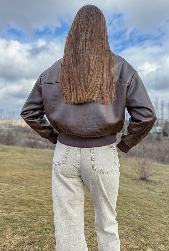 Жіночий бомбер з екошкіри, який виглядає дорого без зусиль. Не масмаркет. Видно одразу. Легкий, з характером, ідеально під базу і джинси.